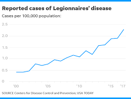 The largest number of deaths from Legionnaires disease was reported in. The number of cases reported to CDC has been on the rise since 2000. Health departments reported nearly 10000 cases of Legionnaires disease in the United States in 2018.